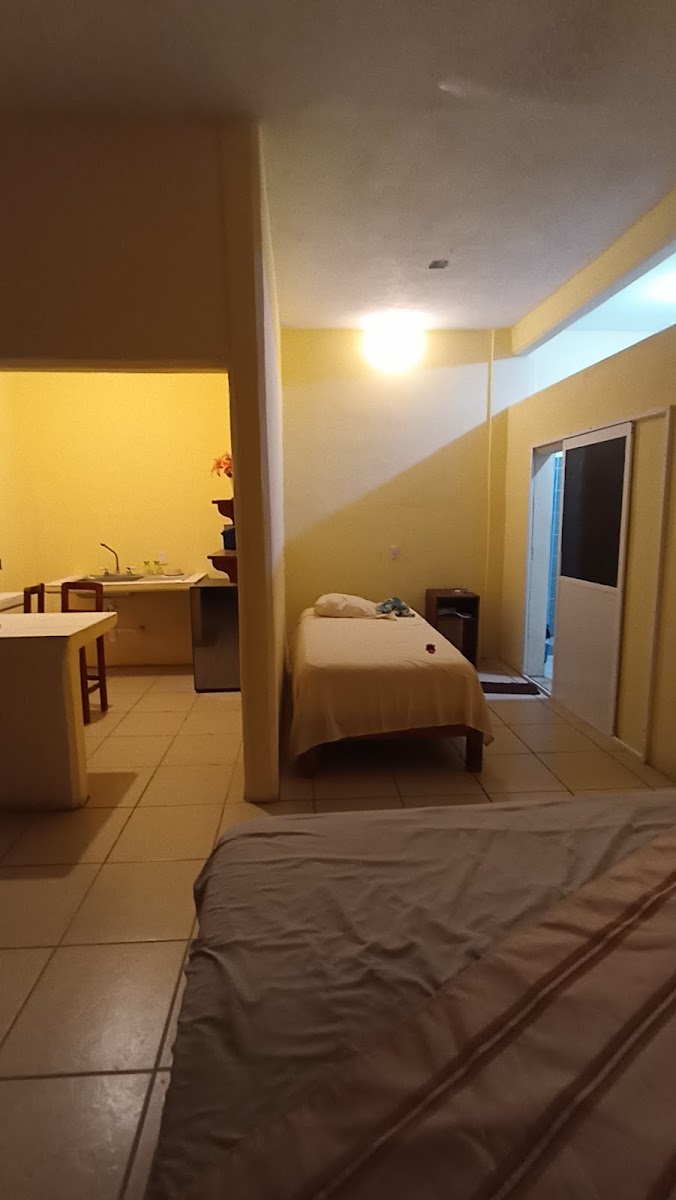 Small hotel, great service, near Playa Chahue. A/C costs an extra 100 pesos nightly, but we'll worth it. Huatulco is a little hotter than Zipolite.